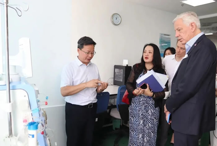 高光勇為鮑達(dá)民大使介紹SWS-5000型連續(xù)性血液凈化設(shè)備