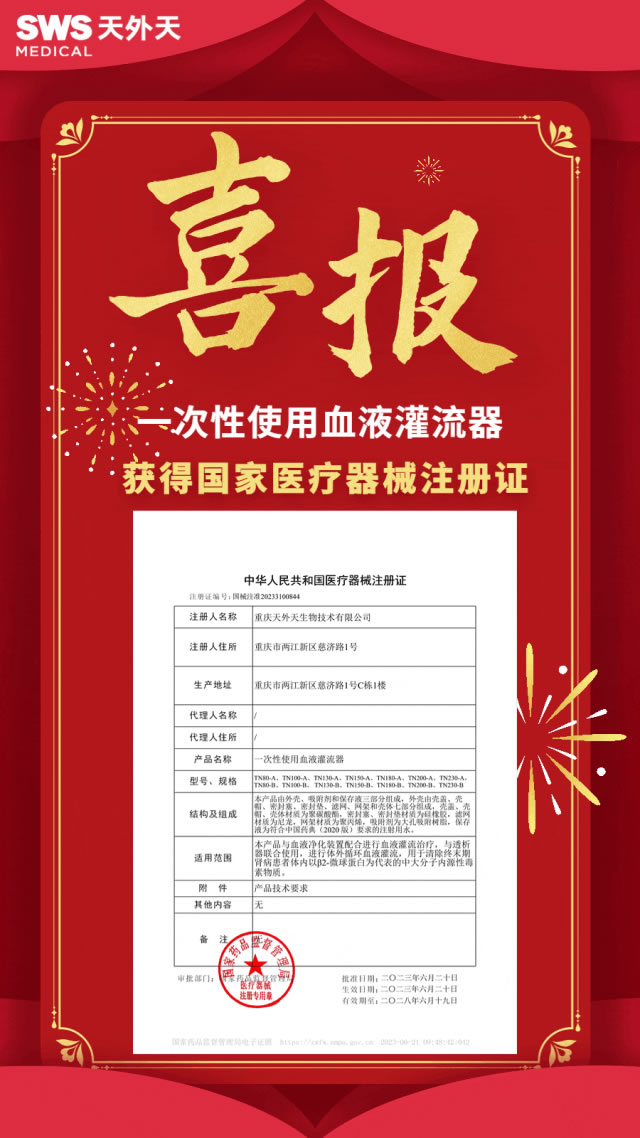 近日,重慶山外山血液凈化技術(shù)股份有限公司(以下簡(jiǎn)稱為“山外山公司”)全資子公司——重慶天外天生物技術(shù)有限公司自主研發(fā)的“一次性使用血液灌流器”成功獲得由國(guó)家藥品監(jiān)督管理局頒發(fā)的《中華人民共和國(guó)醫(yī)療器械注冊(cè)證》,成為推進(jìn)山外山公司全產(chǎn)業(yè)鏈布局的又一重要節(jié)點(diǎn)。