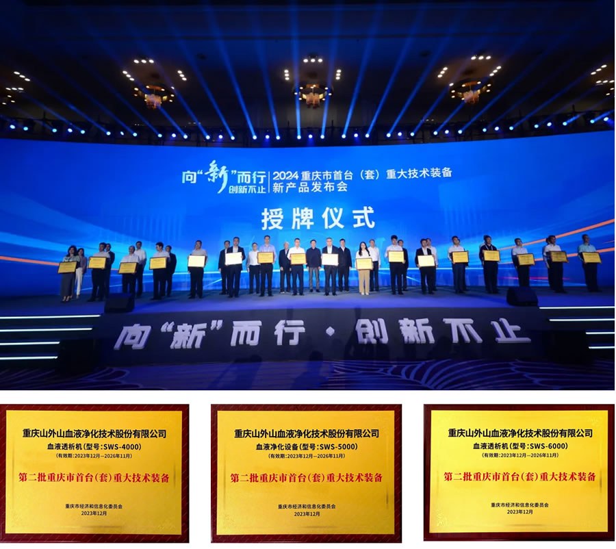 2024年5月12日,2024重慶市首臺(套)重大技術(shù)裝備新產(chǎn)品發(fā)布會上,重慶山外山血液凈化技術(shù)股份有限公司(以下簡稱“山外山公司”,股票代碼:688410)三項(xiàng)產(chǎn)品被認(rèn)定為第二批重慶市首臺(套)重大技術(shù)裝備產(chǎn)品。
