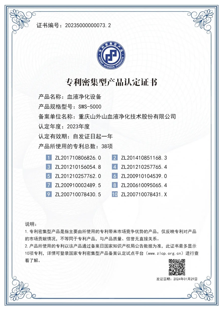 此外,SWS-5000系列連續(xù)性血液凈化設(shè)備前不久還通過了首批國家專利密集型產(chǎn)品認(rèn)定。